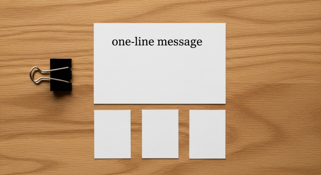 「ズルい」ほど効く中核は、便益を1行に圧縮して、それを全チャネルの冒頭で同一にすることです。便益1行とは、綺麗なコピーではなく稟議が進む事実の要約であり、たとえば「(特定の部署)が毎月繰り返す(面倒・リスク)を、(導入の簡単さ)で(定量効果)に変える」という形に落とします。この1行が決裁されると、SNSの投稿は認知目的の雑談から「痛み→解決→行動」の一本に変わり、LPは説明ページから決断ページに変わり、営業は機能説明から業務の痛みの確認に変わります。ここで初めて、広告もSEOも展示会も、同じ言語の導線として機能します。